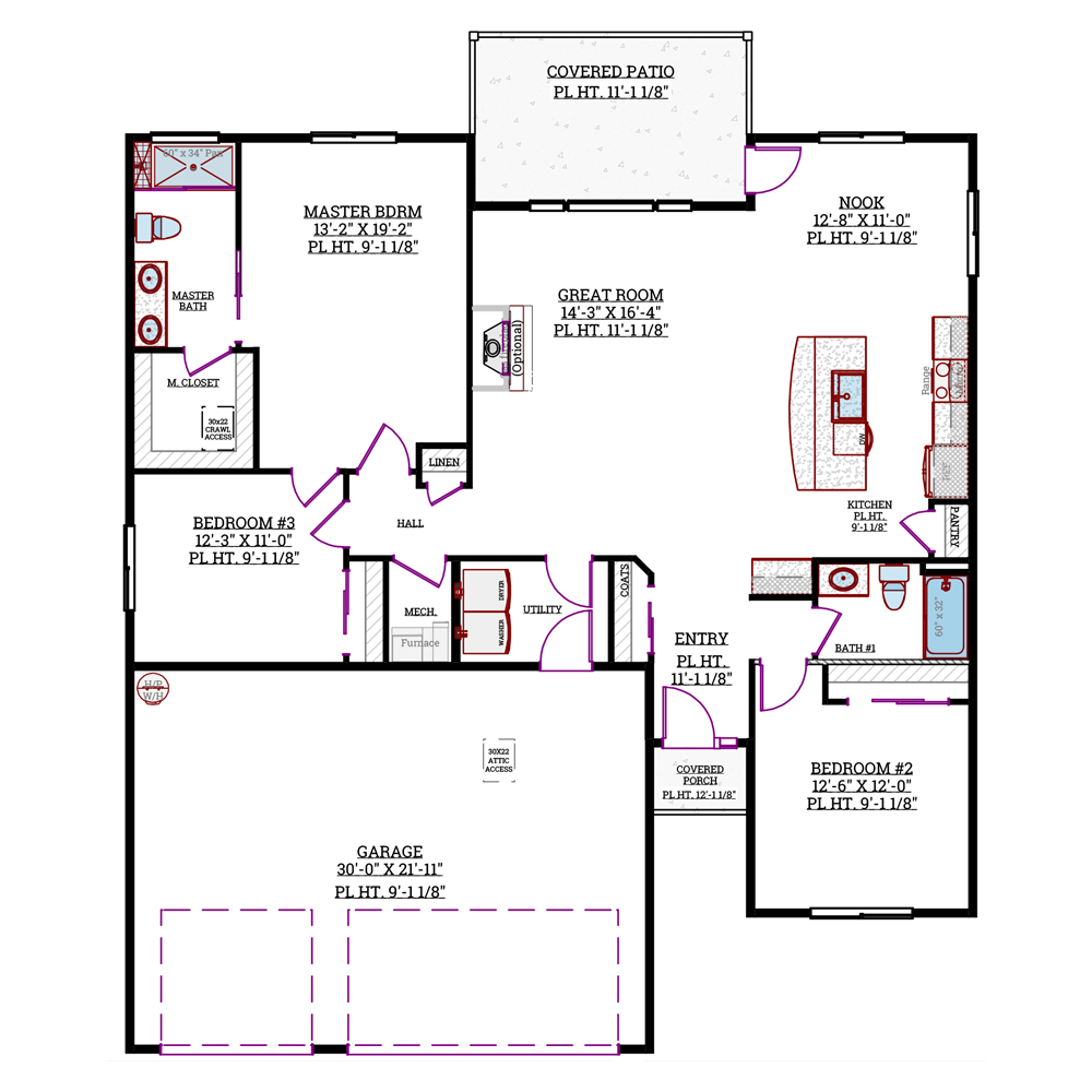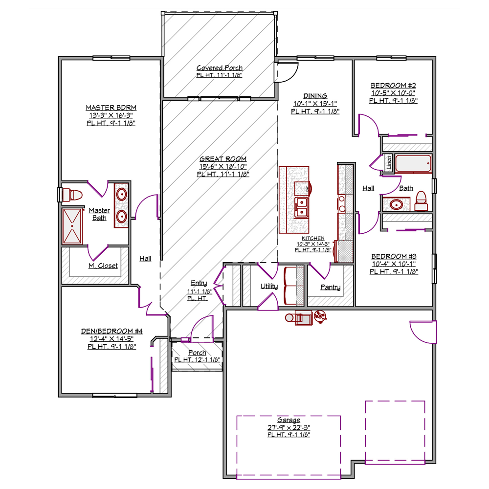 This inviting layout includes a large great room, a master suite with private bath and walk-in closet, and three additional bedrooms.